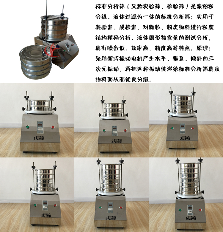2、把標(biāo)準(zhǔn)篩具按孔徑從小到大,從下到上依次疊放到托盤座上,由凹槽或定位螺絲對標(biāo)準(zhǔn)篩進行定位。